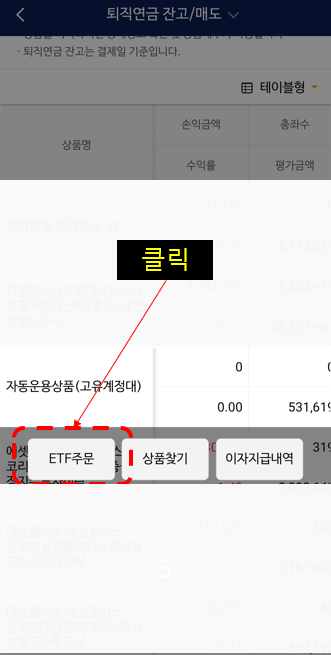 ETF는 자동운용상품(고유계정대)로 선택되 금액에서만 매수가 가능합니다.