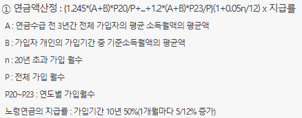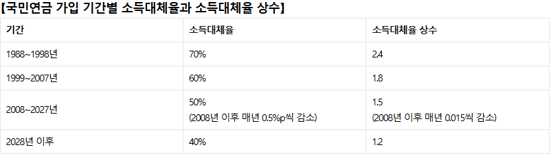 (자세한 값을 계산할 경우 아래의 식을 참조하며 매년 소득 대체율 상수 값도 계산하여 작성해야 됩니다.)