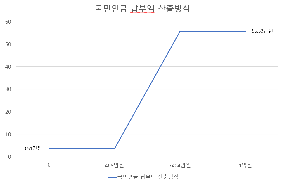 7,404만 원 이상의 연봉부터는 동일하게 55.53만 원을 납부합니다.