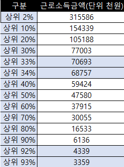 위의 그래프와 같이 보험료율이 인상되면 연봉 468 ~ 7,404만 원 사이의 있으신 분들이 추가적으로 증액되며, 이 수치는 전체 근로자 중 상위 33% 이하의 근로자들에게 추가적으로 국민연금의 납입금을 증액 시키는 결과로 도출됩니다.