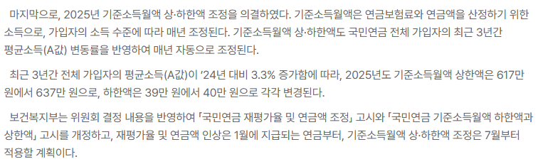 그리고 개인적으로 앞으로의 개혁 방향은 지속 가능한 재정 건정성을 확보할 수 있는 세수 증가 계획[ex) 로봇세 신설 편입, AI 관련 세금 신설 편입 등] 및 납입 상한선 상승으로 인한 고소득자들에 대한 편중을 재분배하는 방법 개선(참고로 저도 납부 상한선에 있습니다. 그래서 비난을 자제 부탁드립니다.) 등을 고려했으면 합니다.