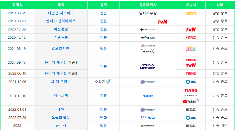2. 웹툰으로 만들어진 콘텐츠를 가지고 있습니다.