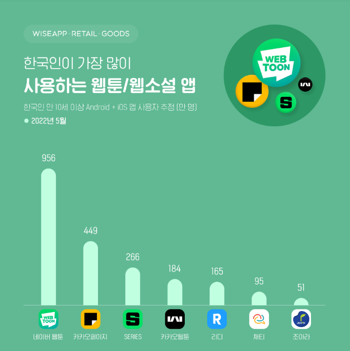 최근 넷플릭스, 디즈니+, 애플TV 등 OTT 시장에서 활성화 및 경쟁구도로 변화되면서 드라마, 영화가 흥행 여부에 따라 OTT 구독자 수가 한쪽으로 쏠리는 형상이 발생하고 있습니다. 이 경쟁에서 가장 치열한 것은 아이디어 즉 콘텐츠인데 네이버는 국내 1위로서 네이버 웹툰 작가들로 발생된 자체 세계관과 스토리를 보유하고 있으며 이를 통해 다양한 콘텐츠를 생성하고 있습니다.