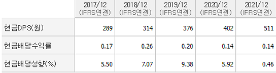 5. 배당금 : 511(0.14%) [년 배당] 위험 (KOSPI 기준 2.24%)