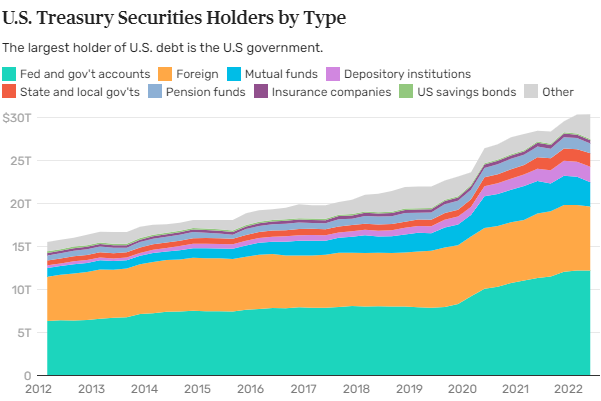 현재까지는 막대한 채권을 발행하여도 세계 최대의 경제대국에 달러라는 최고의 수출상품을 보유하였기에 아래 그래프와 같이 다양한 집단들의 수급으로 인하여 자금을 확보하는 것에 큰 문제가 없었습니다. 하지만 최근 최대 채권 매입 국가이었던 중국이 막대한 양의 채권을 매도 및 금리 인하 기대감 등의 요인들로 24.05.29 미국의 10년 만기 국채 금리가 4.6% 이상까지 급등한 국채 쇼크가 발생했던 일이 있었습니다.