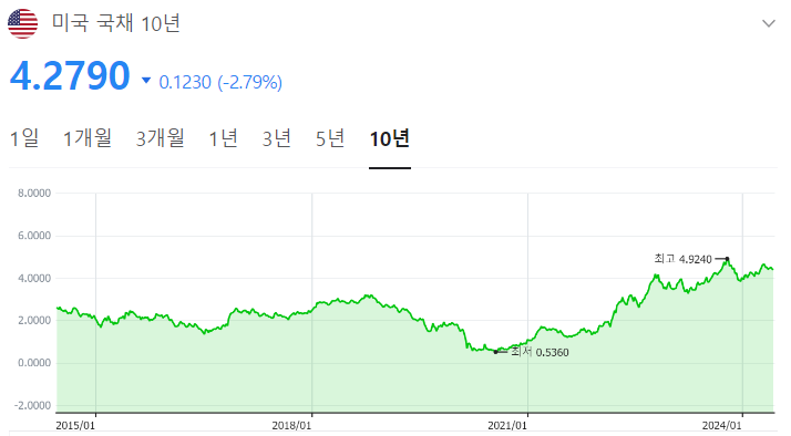 현재까지는 막대한 채권을 발행하여도 세계 최대의 경제대국에 달러라는 최고의 수출상품을 보유하였기에 아래 그래프와 같이 다양한 집단들의 수급으로 인하여 자금을 확보하는 것에 큰 문제가 없었습니다. 하지만 최근 최대 채권 매입 국가이었던 중국이 막대한 양의 채권을 매도 및 금리 인하 기대감 등의 요인들로 24.05.29 미국의 10년 만기 국채 금리가 4.6% 이상까지 급등한 국채 쇼크가 발생했던 일이 있었습니다.