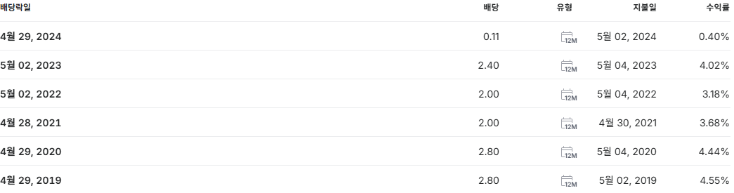 5. 배당수익률: 0.4% 우려(MOO ETF 평균 1.7% 대비 우수)