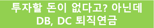 보통 퇴직연금?이라고 물음표가 나오실 수 있습니다. 이렇게 말씀하시면 거의 대부분 DB에 가입하여 관심이 없어서 모르실 수 있습니다.