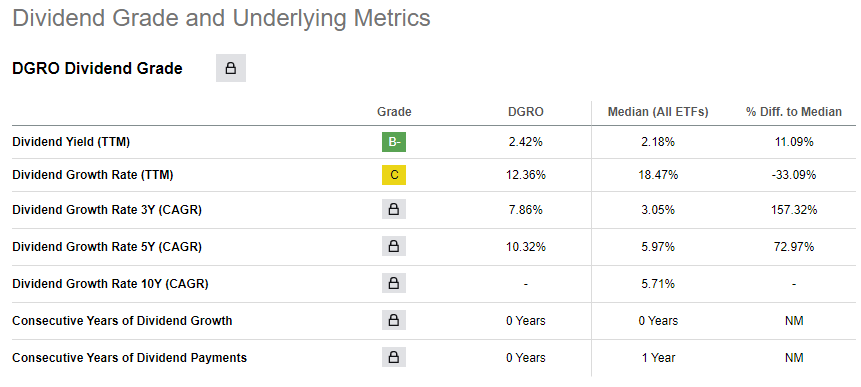 또한 DGRO는 2014년 6월에 출시되었으며, BlackRock가 보유하고 있는 396개의 ETF 중 순자산 규모 순위가 25위(23.02.13일 기준)로 상위권에 위치하고 있습니다. 이는 차후 환급성은 문제는 없다고 사료되고, 운영 수수료는 0.08%로 매우 적은 수수료를 추구하고 있습니다.