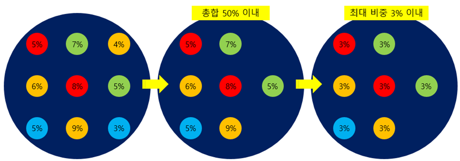 - 개별 기업 한도를 3% 내외로 구성