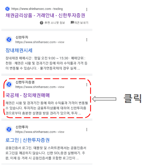 구글에서 신한 투자증권 국고채를 입력하세요